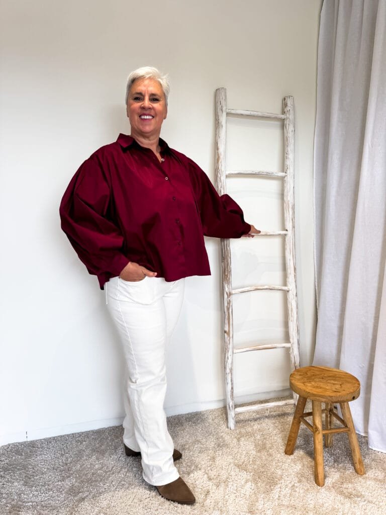 Blouse met pofmouw bordeaux