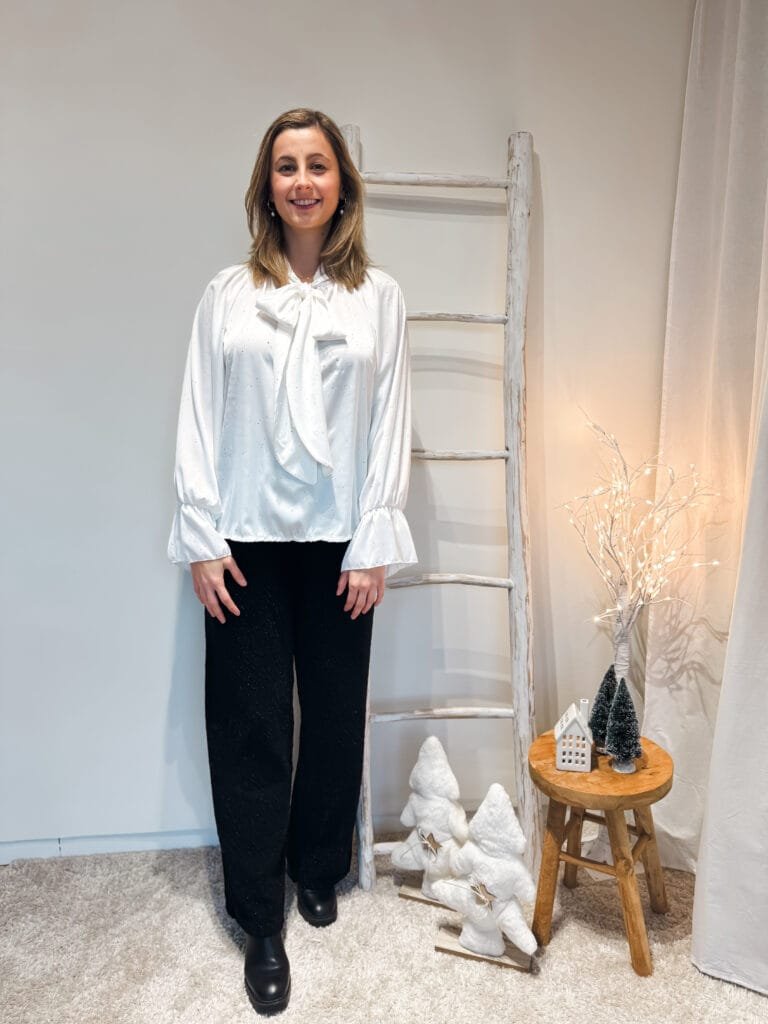 Witte glitterblouse met strik