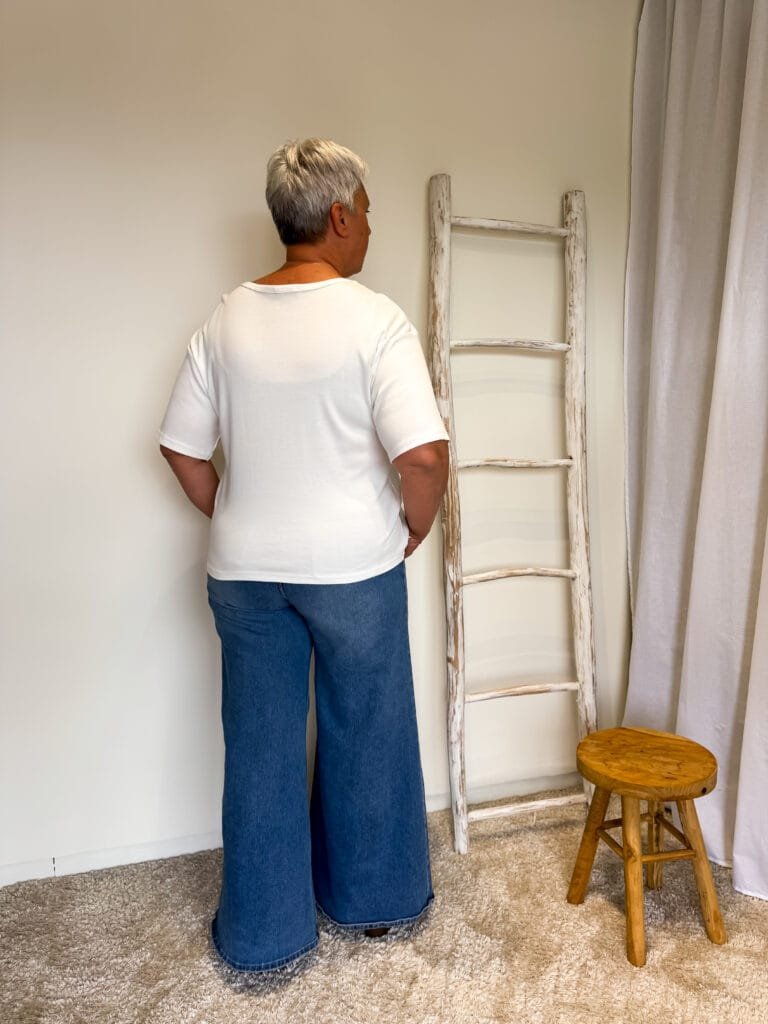 Lieve is 1m65 en draagt normaal maat 44/XL.