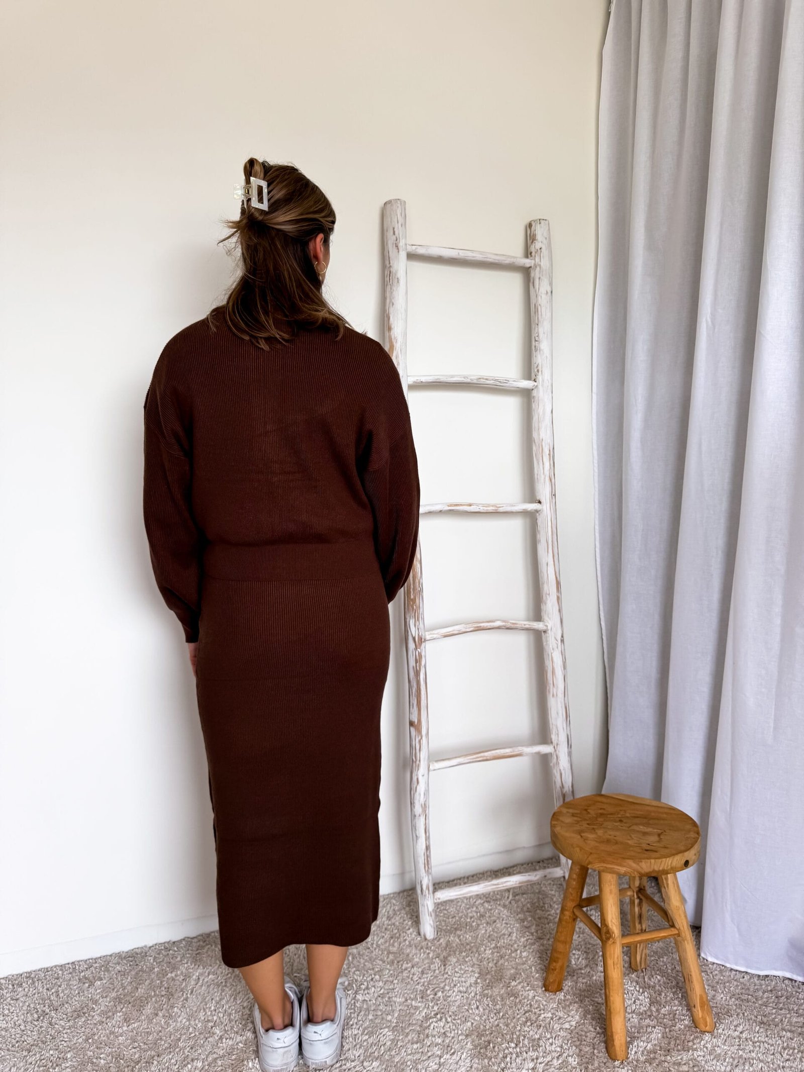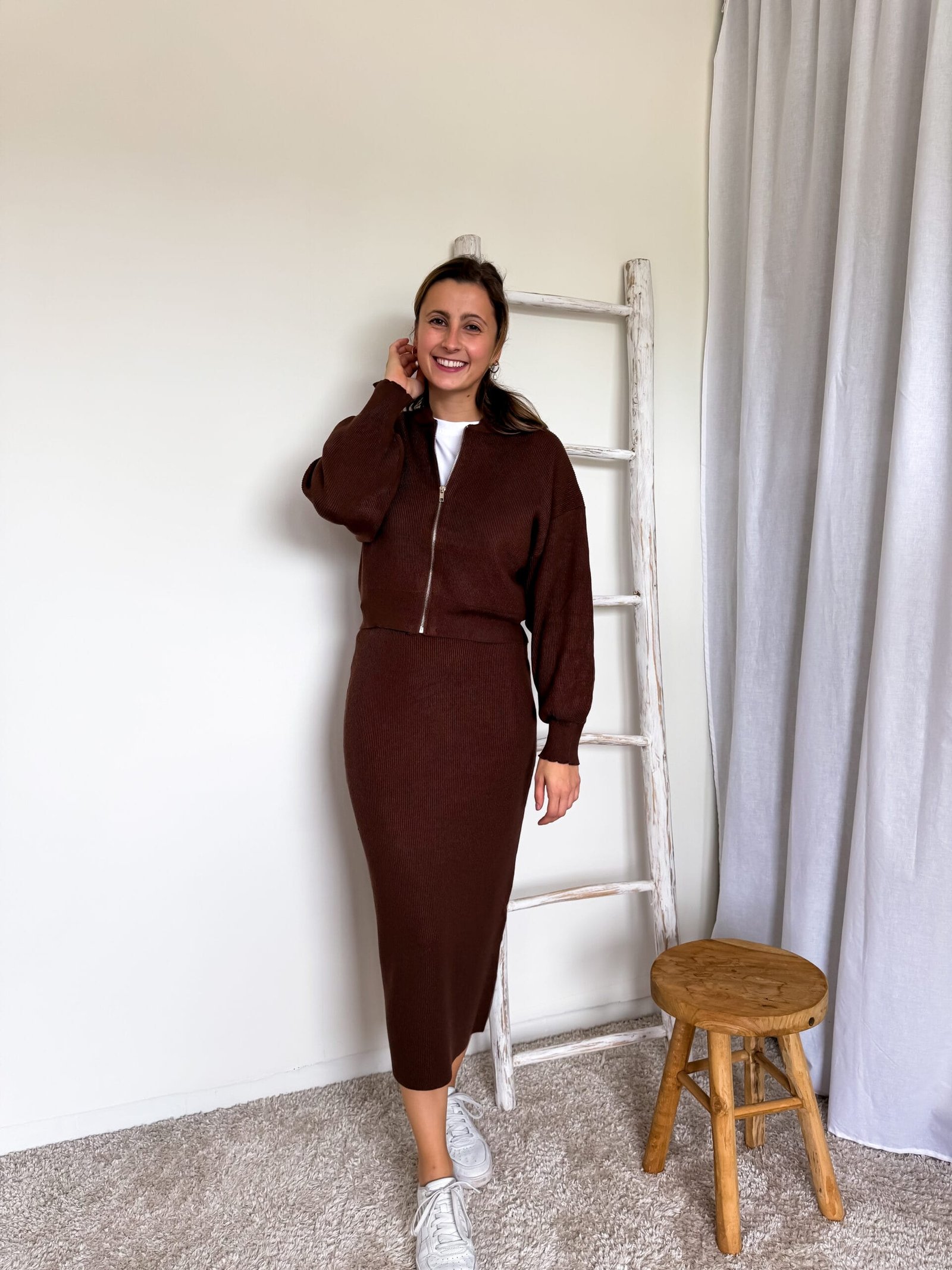 Joelia is 1m68 en draagt normaal maat 36/S. Zij draagt hier maat S/M.